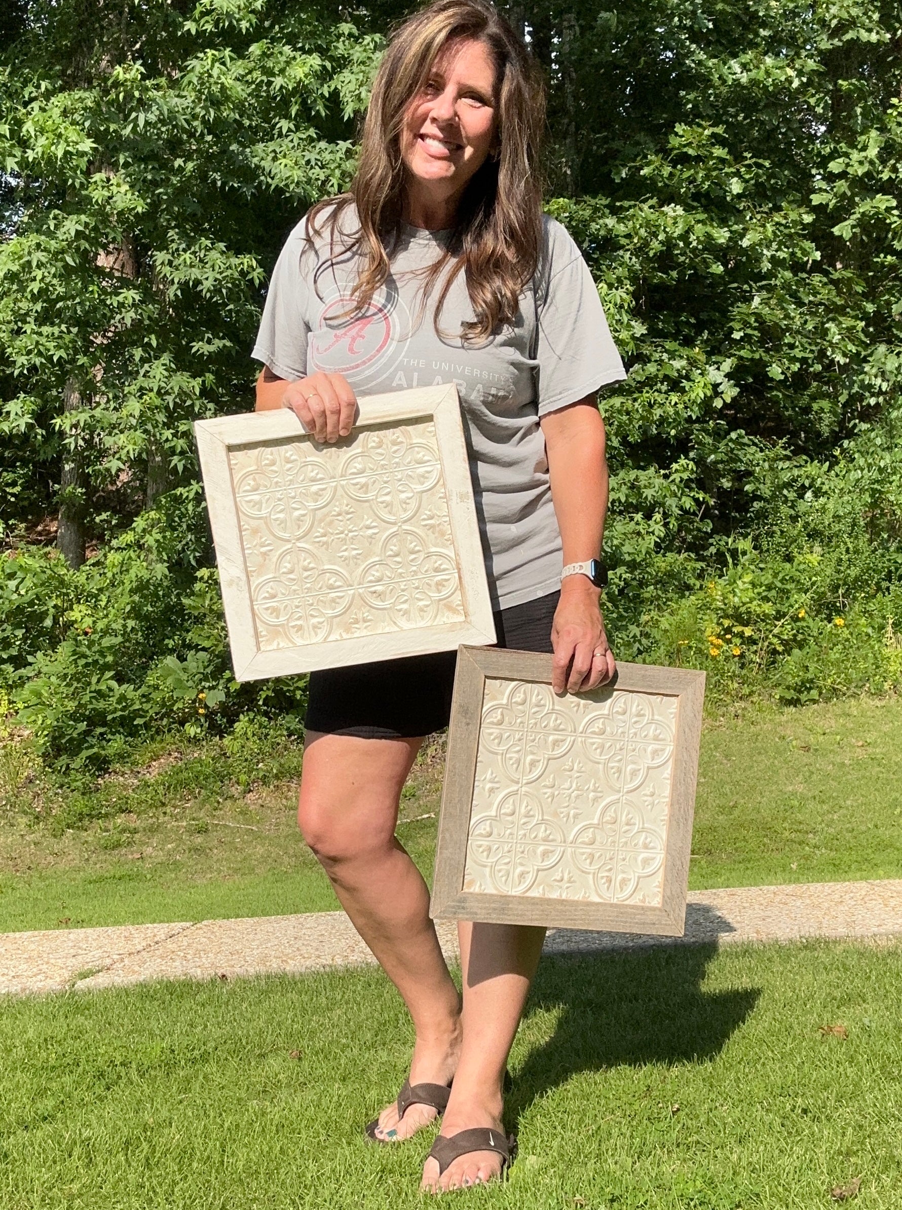 Choose from two frame styles—natural reclaimed wood or distressed white painted wood—to perfectly complement your space. Measuring approximately 15”x15” including frame, these versatile wall accents add texture, depth, and meaning to any room.