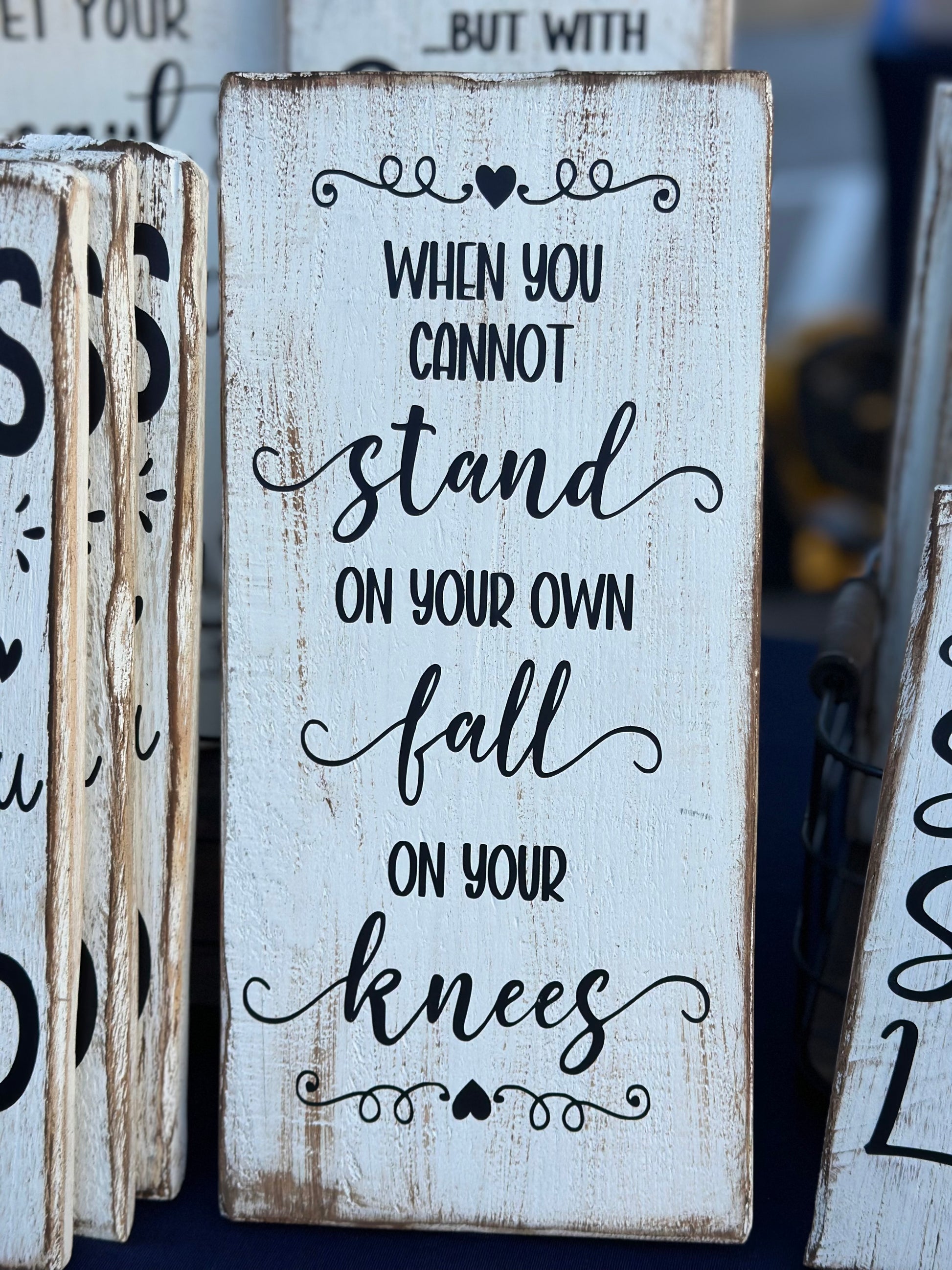 These inspirational signs are handcrafted from authentic reclaimed wood, finished in a white distressed style, and hand-lettered with faith-filled quotes and Bible verses. Each piece carries a heartfelt message and a rustic farmhouse feel, making it a beautiful and meaningful addition to any space.